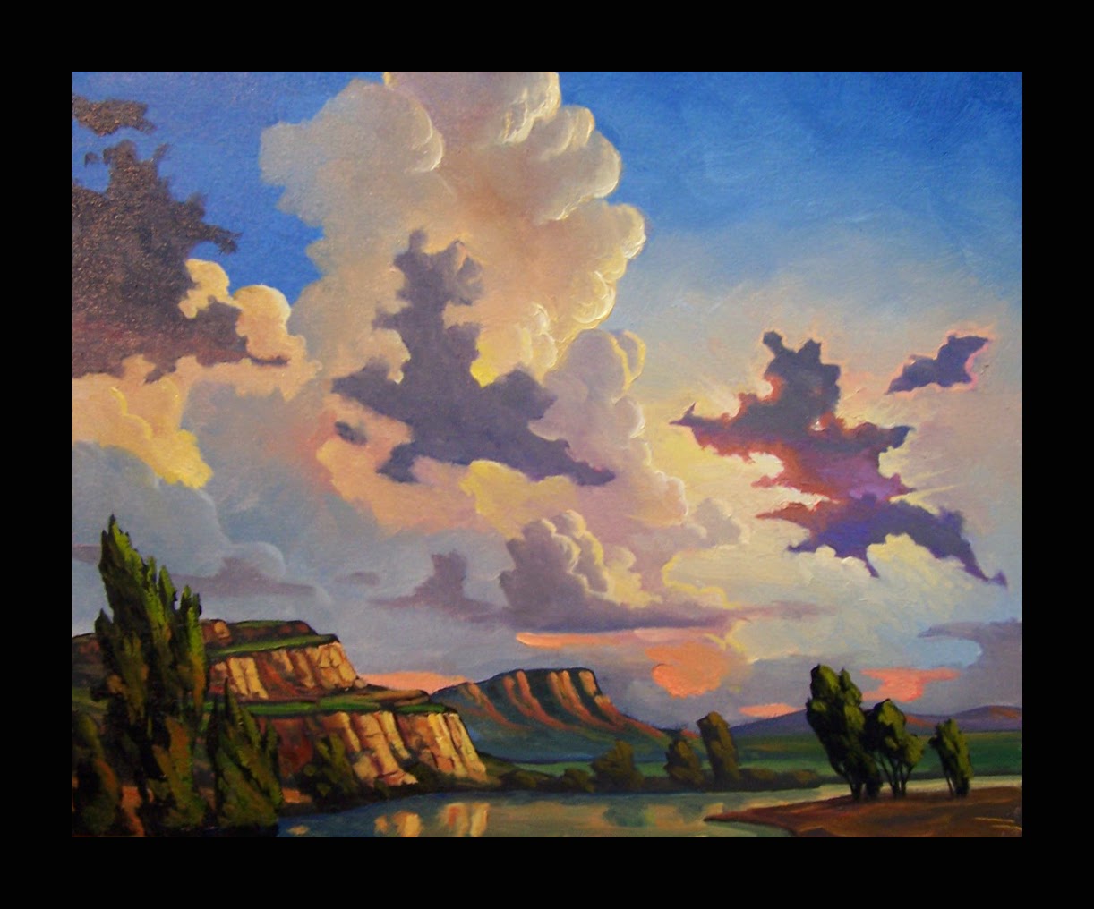 Simple compositions, strong contrasts and muted tones of vibrant colors...these are a few of my favorite things. Also, watching a dog run on two legs. I had our little black lab Sunny out in the desert the other day chasing birds. There are a lot of stickly and prickly cactus-like thorny pokers all over the desert. It seems every 5 minutes she is lifting a paw for a few steps. Every ten minutes she needs to come over to get unstuck from an unwelcome tenacious hitchhiker. The cholla cactus are the worse 'cause as soon as you get them out of one toe they're back on you and they sink deep and hurt and make blood to flow. Anyway, a slight limp or raised foot ain't too much to be concerned with usually but when Sunny was all of a sudden lifting two legs (on the same side) and starting running I believed I was witnessing a miracle...kind of like I feel when watching the sunset on my favorite marshland (bottom picture). These will be available soon on auction forever to be reminders of the two legged dog.